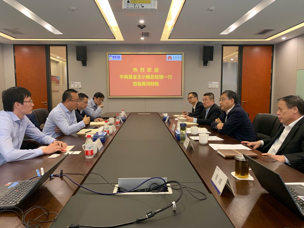 华商基金固定收益部总经理陈杰、权益投资部副总经理及基金经理李双全、固定收益部总经理助理及基金经理张永志,公司财务负责人石海波、首席风险官曾晖及资金运用部、综合办公室主要负责人及相关人员参加会谈。